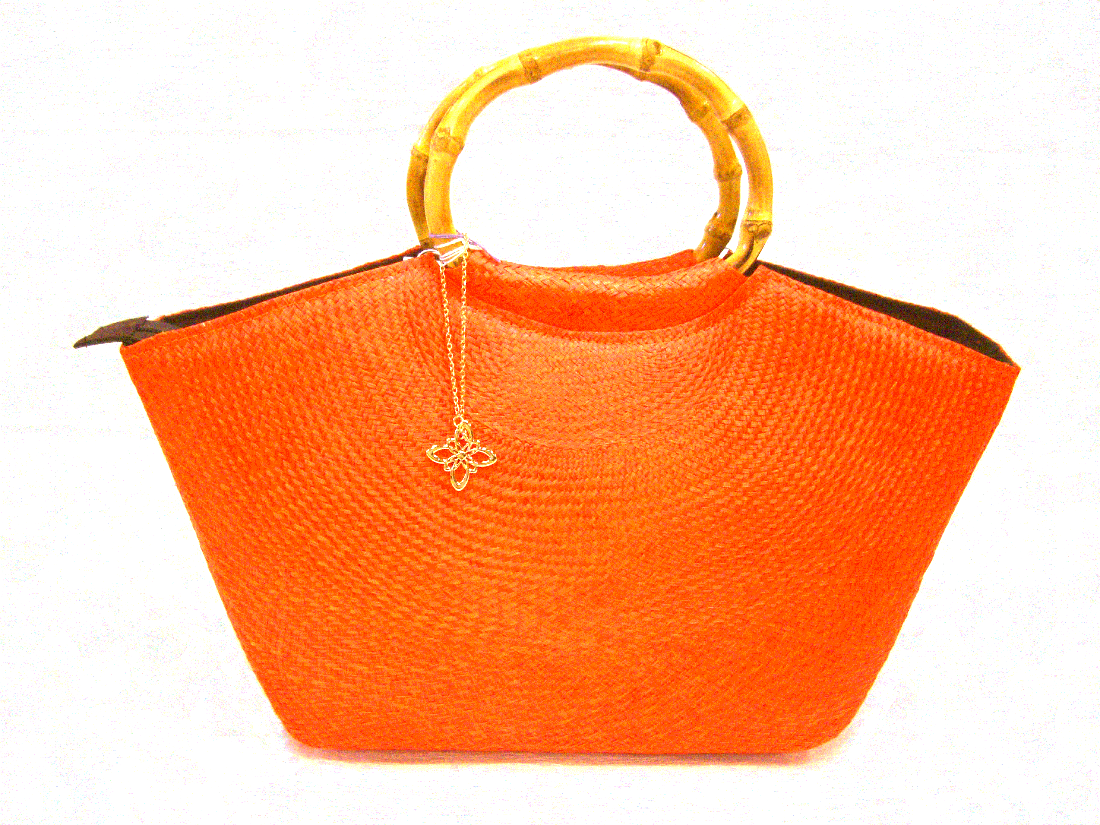 夏らしいビビッドなカラーのバッグ(ブリヤシ繊維)。