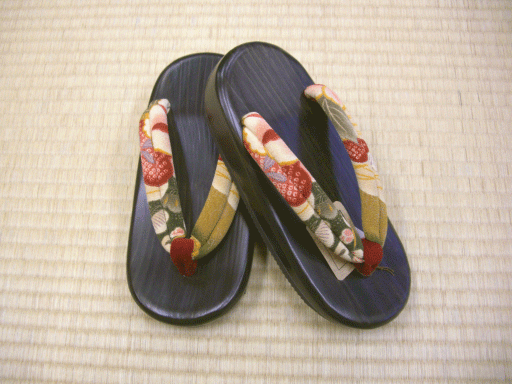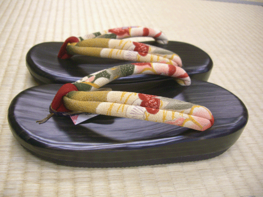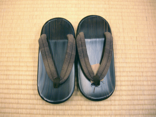 杉の木で作られた丸下駄。底にゴムがはってあるので、ずっとはいていても、足が疲れにくいです。
