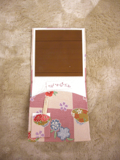ちなみに、おソロの柄の手鏡もございます。右下には、爪楊枝入れつき♪(¥1,260)