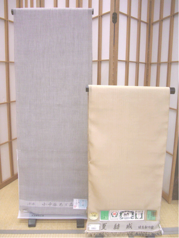 今日は、こちら。男物の小千谷縮と夏結城です。