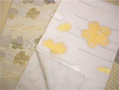向かって右の袋帯は、裏にも桜の地模様が入っています。