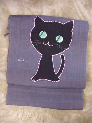 猫の九寸名古屋帯です!ハリのある紬でしめやすい帯です。