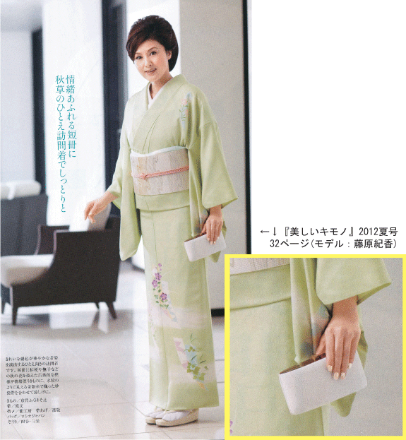 『美しいキモノ』にも掲載され、2012年夏号では、藤原紀香さんがこのバッグを持って掲載されています。