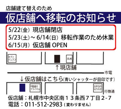 仮店舗:札幌市中央区南13条西7丁目2-7