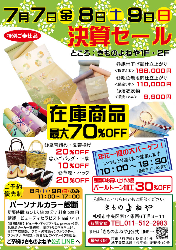 ご予約優先制。ご予約はきものよねや公式LINEまで。