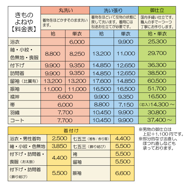 当店の料金表の最新版がこちらです。