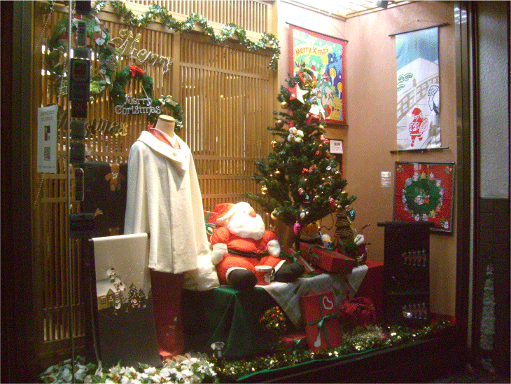 12月を前に、よねやのウィンドウはクリスマスバージョンに変身しました!