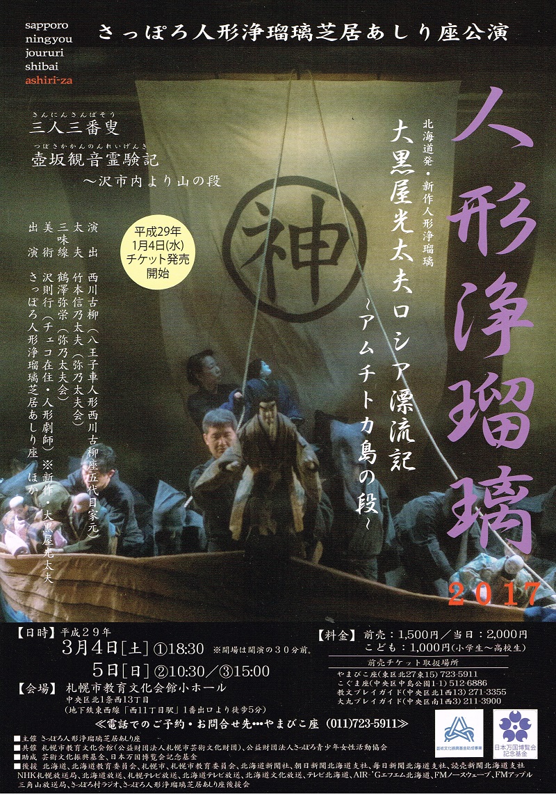 今日は、さっぽろ人形浄瑠璃芝居あしり座公演のご案内です!