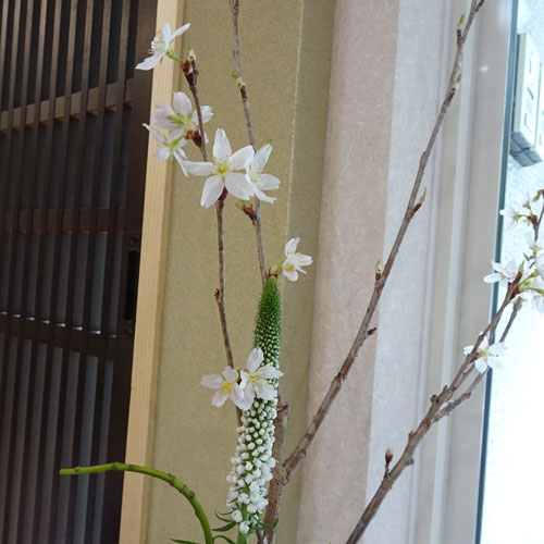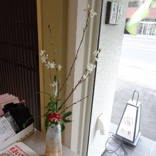 木曜日に二階のレンタル和室でお茶のお稽古がありました。床に飾った桜を帰りがけに先生がお店に少しお譲りくださいました。