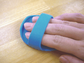 このとおり。持ち手部分に指を入れてこすります。