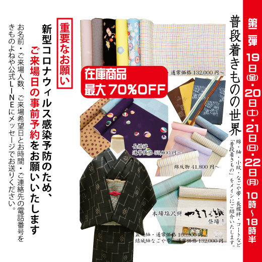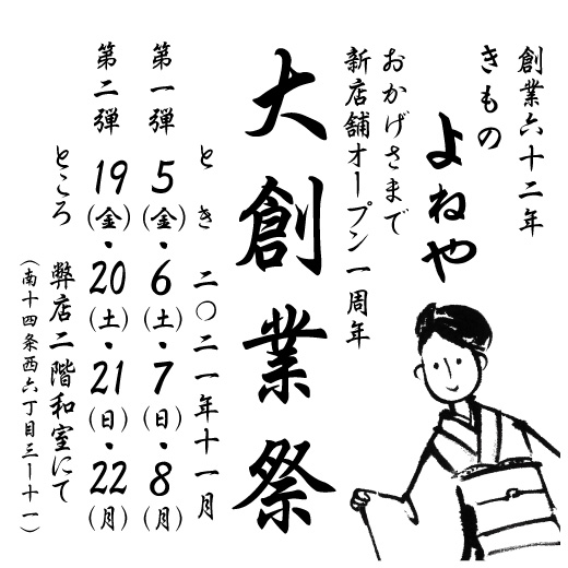 きものよねや大創業祭のご案内です。おかげさまで新店舗で一周年です。
