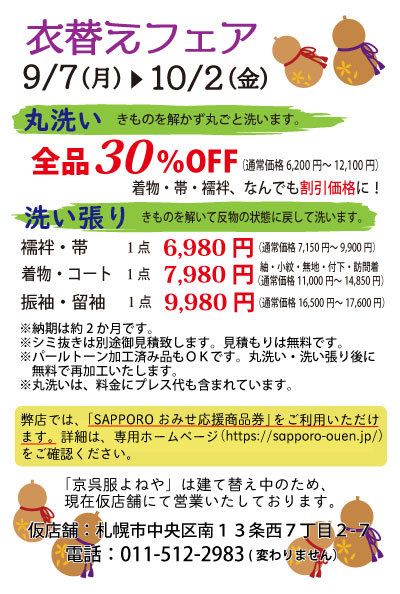 秋の衣替えキャンペーン始まります
