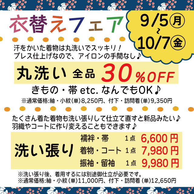 夏に着たお着物のお手入れに、おトクなキャンペーンのお知らせです♪