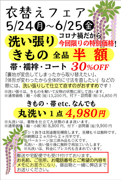 コロナ禍だから、これまで以上の特別価格で、お着物の洗い張りが半額です!