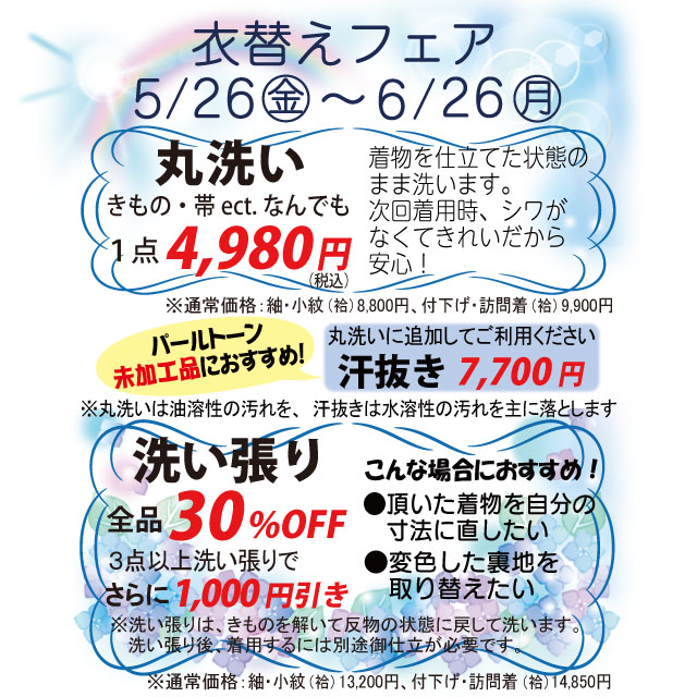 袷のきもののお手入れは是非お得なこの機会に!