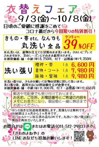 お得な価格でお着物のお手入れができるチャンス♪