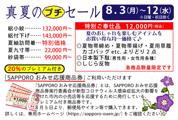 また、夏物の在庫もお値下げ!来年用をお得に手に入れるなら今がチャンスです!