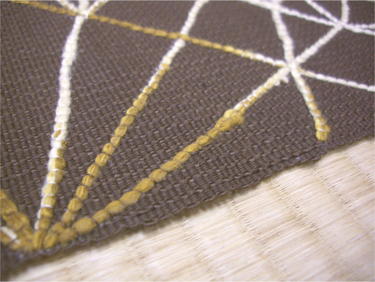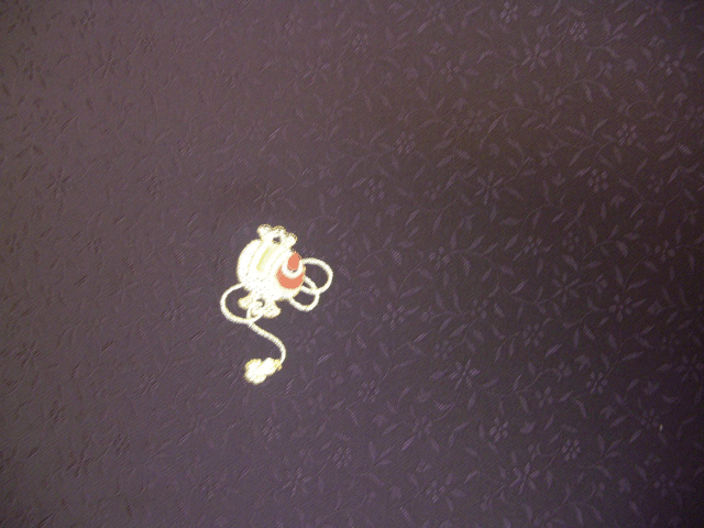 地紋の入った反物に、宝尽くしの刺繍が控えめに、ぽん、ぽん、と入っています。