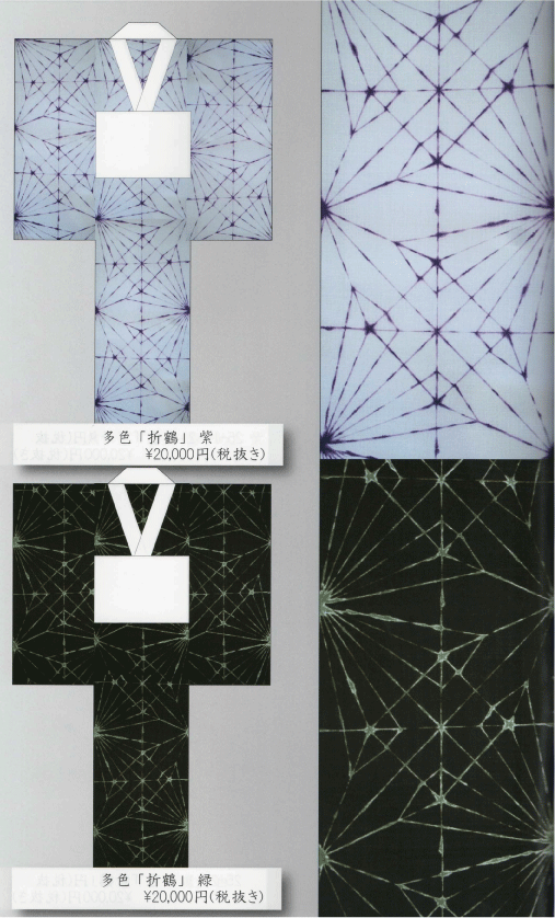 この「折鶴」柄は、先日当ブログでご紹介した名古屋帯と同じ、折鶴を折った折り紙の折り目が柄になっているのです。
