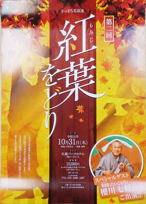 さっぽろ名妓連主催「第二回紅葉をどり」、10月31日(木)パークホテルにて開催予定です!